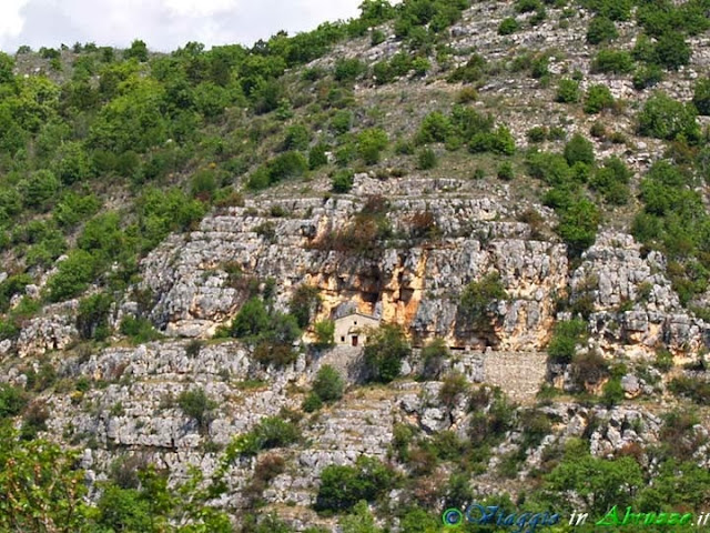 Rupestrian church of Saint Rocco. In the suggestive hamlet of Ripa in the small village of Fagnano Alto, there is the rupestrian (cave) church dedicated to Saint Rocco. The church is almost excavated in a cave and located on a natural terrace upon which tourists can enjoy a spectacular view. Inside, there are two altars and some frescos. On the outside the church has two small side windows, a simple door and a squared window upon it. The floor is made of squared tiles and concrete, while the roof is made of rocks and is 2,5-3 meters high. Inside, there is an altar with a fresco representing Jesus Christ and Saint Antonio from Padua. There is also a small niche with St. Mary. On the right handside, there is another fresco, more ancient than the other one, which represents Saint Sebastian and Saint Rocco. Behind the altar there are ruins of another fresco, with flowers and a faible image of Saint. Mary. On the roof, blue stars are painted.